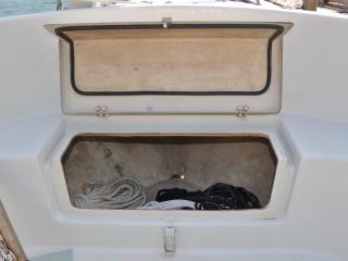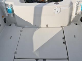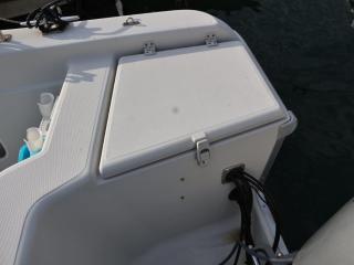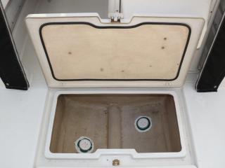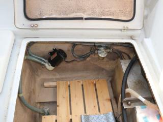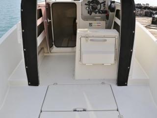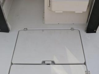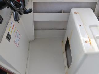 ◆デッキは全体的に硬くてノンスリップの異常摩耗なども見受けられず、良好だと思われます。イケスは操船部のすぐ後ろに1間備わっています。イケスの後ろにはステンレスの燃料タンクが備わっています。