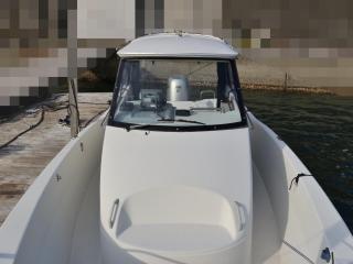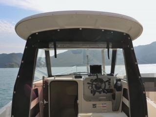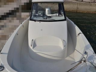 ◆艇は平成10年11月進水のジョイフィッシャー750(製造者型式:FP750T)で、船体は実測約8.3m、幅2.5m程度です。取材時の船齢は約22歳ですので船齢なりの日焼けなど経年劣化も見受けられますが、大きな当て傷や損傷も無く相対的に綺麗な個体に見受けられました。バウスプリット、ガンネル廻り、ハルもたちまち補修が必要な損傷などは見受けられませんでした。なお、取材時は係留状態でしたので船底の状態は確認できていませんが、オーナー様によりますと2020年11月に船底掃除をされた時には特に問題は無かったとの事でした。