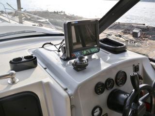 ◆コクピットにはホンデックス(本多電子)のGPS魚探が装備されています。取材時には動作確認をさせていただきましたが、特に問題無いようでした。