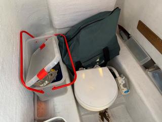 センターコンソールは、シンプルで中に入るとマリントイレが装備されています。