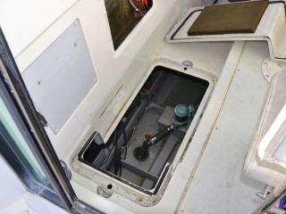◆この艇はキャプテンシートの下からリアドア付近まで、大きく開口する構造になっていますのでエンジンルーム内のメンテナンス性は良さそうです。