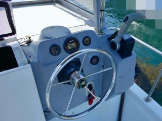 *NO.1の写真で見え難いですが操舵席横に腰高の手すりもオプションで装着されてます!操船しながら釣りをするのに有るのと無いのとでは大きな違いとなりますね!手すりにロッドキーパーとロッドホルダーを取付けるとさらに便利に釣りが楽しめるでしょう!