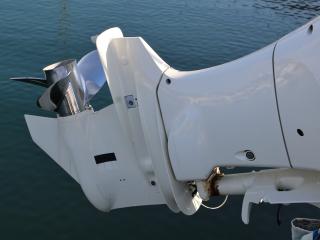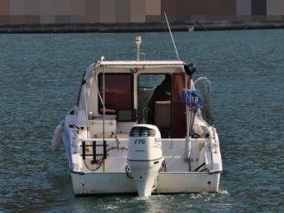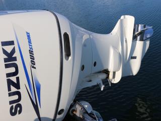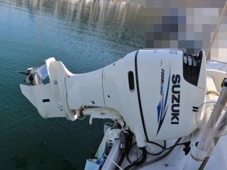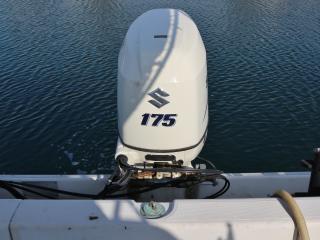 ◆船外機は平成24年12月製造のスズキ製(限定ホワイトカラーモデル)4サイクル船外機、DF175(型式:17502F 連続最大出力175PS/5800rpm)が搭載されています。なお、取材時のエンジン・ランタイムは約350時間でした。また、最高速はやや荒れている海面で28ノット程度出る事を確認致しました。