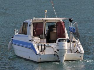 ◆船外機は平成24年12月製造のスズキ製(限定ホワイトカラーモデル)4サイクル船外機、DF175(型式:17502F 連続最大出力175PS/5800rpm)が搭載されています。なお、取材時のエンジン・ランタイムは約350時間でした。(アワーメータープラス約100時間が実際のランタイムとの事です。)また、取材時には試乗もさせていただきましたが、2名乗船でやや荒れた海面状態の中、最高速は約28ノット出ました。※エンジン始動、航行時の様子を動画に収めていますので是非ご覧下さい。