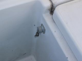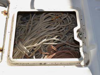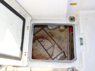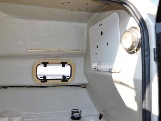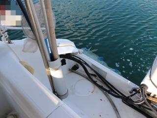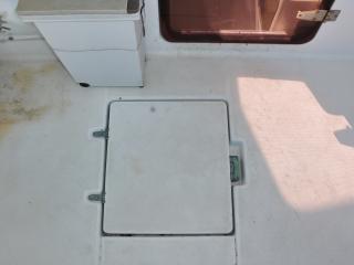 ◆フロントデッキは船齢相応の日焼けなどの経年劣化、表面の傷はあるものの硬く大きな補修などの必要は無い様に見受けられました。また、バウレールは曲がりなどはありませんが、取り付けネジがやや緩んでいるように見受けられました。(増し締めで直るのではないかと思います。)またアンカーロープストレージのハッチについているヒンジは割れていました。(気になる場合は交換されるのが良いかと思います。)どちらも航行に影響はありません。