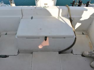 ◆アフトデッキ中央にはイケスも備わっています。イケスの水はポンプで汲み出せるようにもなっています。ポンプの電源は写真No,22の電動リール用電源から取れるようになっています。
