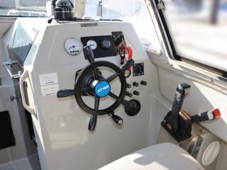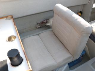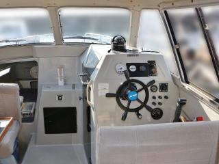 ◆操船席は右側で、操舵は油圧式です。ヘルムハンドルは動かしてみて特に問題無いように見受けられました。ヘルムポンプ軸のシールも問題無いようでした。