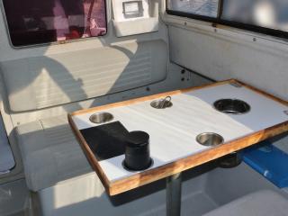 ◆サンキャットSC770TCRはキャビン内が広く、テーブルやベッドスペースもあり、また、個室トイレ、ベットスペースもありますので、ご家族やお仲間でワイワイやるのもよし、また釣行前に足を延ばして仮眠を取る事も可能ですから、クルーザー的な要素をお求めの方には面白い艇種かもしれません。