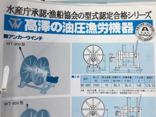 ◆この油圧アンカーウィンチはオーナー様がご不要になられた為に出品をご依頼いただけました。製品は本体に型番を記載したコーションプレートや打刻などが見当たらない為、正確な製造年月日や型式は不明ですが、外観や寸法から調べた結果、「株式会社髙澤製作所製 油圧アンカーウィンチ WT-600型」ではないかと思われます。(あくまでも推測なので「相当品」とさせていただきます。)