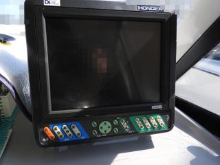 ◆操舵席の後部にはフルノFCV-620魚探を据え付けしています、外からも見えます。