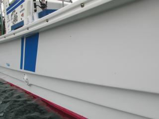 この船は1990年に進水されていますので、船齢は30年以上が経ちますが、地元の造船所さんのプロによる手仕事でリニューアルされていますので、ピカピカの船です。