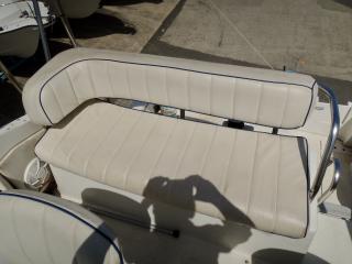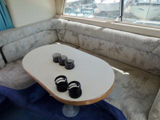 ◆まず船内左には、大人が4名がゆったりと座わることができるL型ソファーが装備されております。
