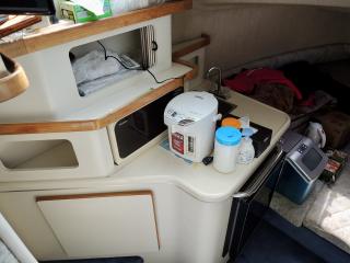 ◆船内奥には、ギャレーシンク設備はもちろん、冷蔵庫が完備されております。