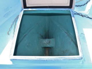 ◆フロントデッキ(オモテ)には船首側にアンカーロープストレージがあります。内側を見た限り大きな補修痕などは無いように見受けられました。