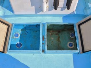 ◆ブリッジ前には大きなイケスが2間備わっており、蓋はしっかり密閉されていました。