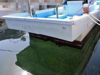 ◆取材時は係留状態でしたので船底の確認はできませんでしたが、少なくとも1年以上乗っていらっしゃらないようですのでプロペラ廻りにはカキや貝が付着しており現状では本来の航行ができない状態です。
