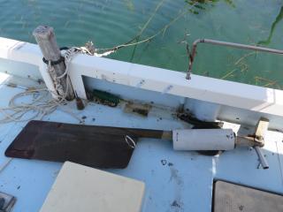舵は俸舵です、ペラシャフトは引き上げ式です。