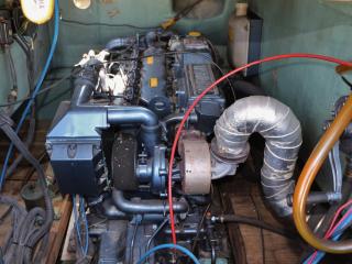 ◆エンジンはヤマハのインタークーラーターボ付き4気筒ディーゼルエンジン、MD385KUH-C(型式:N13)を搭載しています。検査手帳に記載されている連続最大出力は145PS/2900rpmです。なお、取材時のエンジン・ランタイムは3742時間でした。この数字はおそらく実数だと思われます。