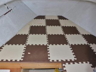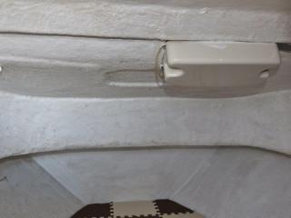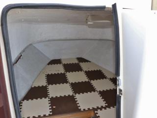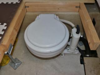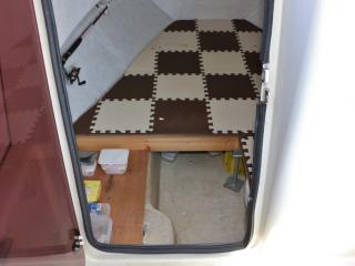 ◆Vバース内には左舷側から入れます。バース内には手動式のマリントイレが備わっています。なお、オーナー様自作のボードが貼ってありますのでこの上で大人が横になれる広さがあります。