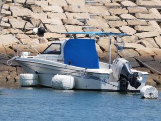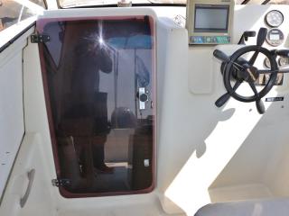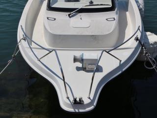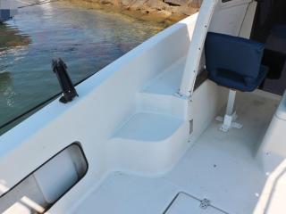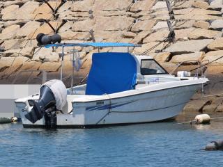 ◆艇は平成9年進水の日産ジョイフィッシャー「FP700T」です。取材時の船齢は約24歳ですので、船体は船齢なりの日焼けなど経年劣化が見受けられますが、6年ほど前までは陸上保管艇だった事もあり、相対的には綺麗な個体だと思います。また、航行に影響があるような大きな損傷など無い様に見受けられました。また、船のタイプはキャビンの外周を歩いて廻れるウォークアラウンドタイプです。