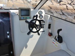 ◆操船席は右側で、操舵は油圧式です。ヘルムハンドルは動かしてみて特に問題無いように見受けられました。ヘルムポンプ軸のシールも問題無いようでした。