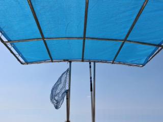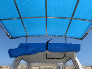 ◆アフトデッキには大きめのオーニングがあり、夏場の晴天時、冬場の雨天時などには重宝しそうです。なお、テント生地に大きな破れなどは無い様に見受けられました。フレームもしっかりしています。
