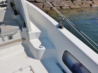 ◆フロントデッキは船齢相応の日焼けなどの経年劣化、表面の傷はあるものの硬く大きな補修などの必要は無い様に見受けられました。また、バウレールもしっかりしていました。