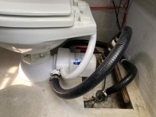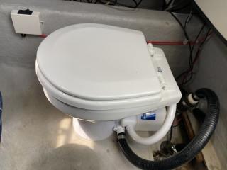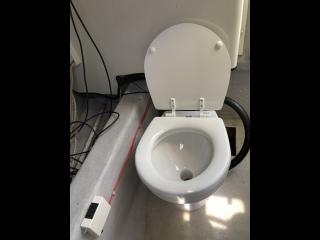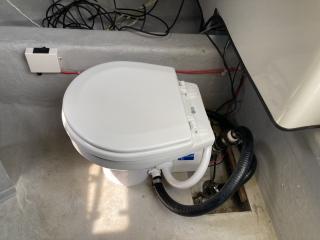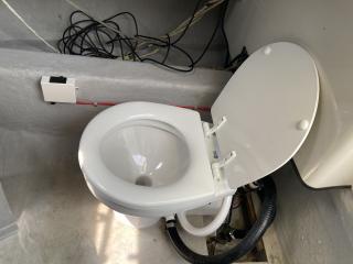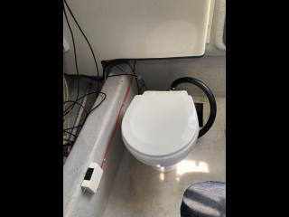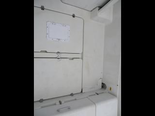 ◆左舷側に室内に入る扉があります、トイレが付いています、残りのスペースはかたずけて敷物をすれば休息のスペースになりそうです。