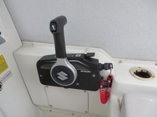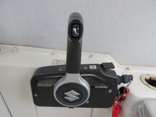 ◆エンジンのコントロールレバーは綺麗です、GPS魚探はホンデックスPS800です。