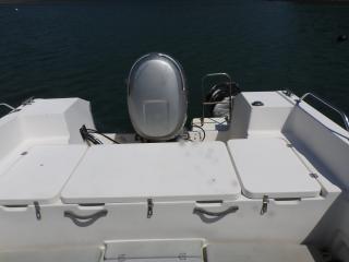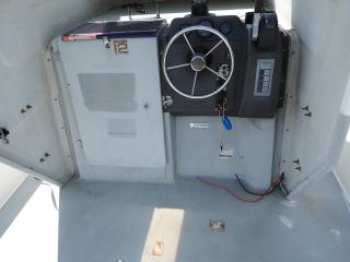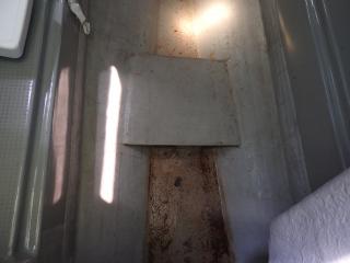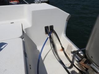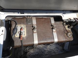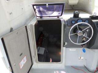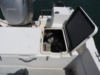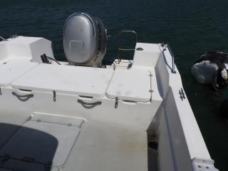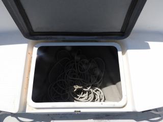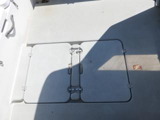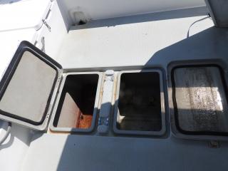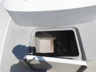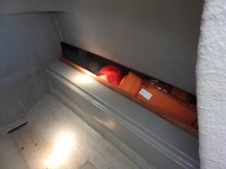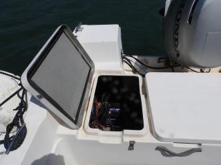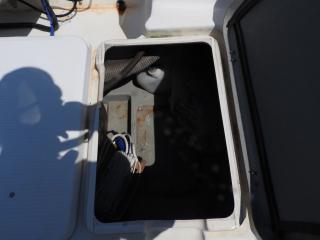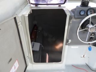 ◆艫に3間のストレージがあります、右舷側にバツテリー、メーンスイッチがあります、左舷は物入れです、中央に大型でFRP製の燃料タンクを納めています、オーナー曰く容量は正確に測定していませんが約150Ⅼくらいの容量のようです。