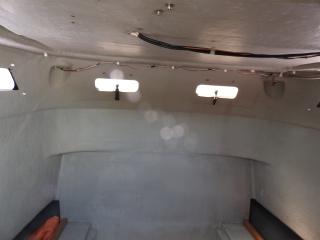 ◆左舷に室内に入るドアがあります、室内は広く敷板などをすれば2~3名は休息できそうです、トイレを付けることもできます。