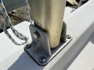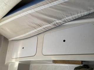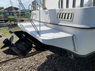 右舷後部のトランサムステップとハルの繋ぎめにコーキングの跡はありますが、グラつき感などはなく使用には問題ございません。