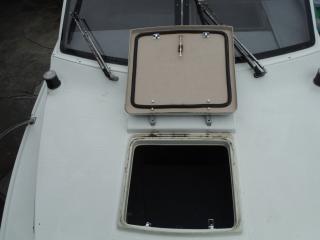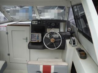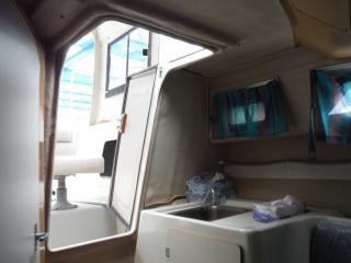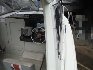 ◆キャビンはハードトップです操船はしやすそうです、キャビンの入口は左舷側にあります。