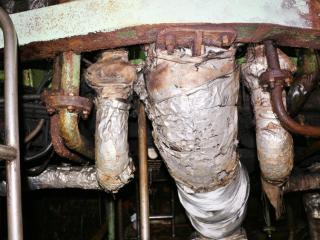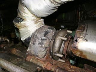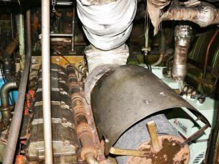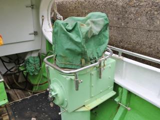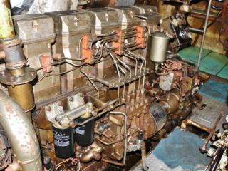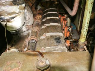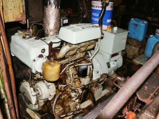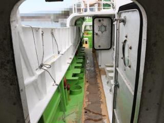 ◆主機は三菱製のインタークーラー・ターボ付き直列6気筒ディーゼルエンジン、S6R2F-MTK-3(連続最大出力820PS/1450rpm)を搭載しています。オーナー様は通常8~9ノットの巡行でご商売をされてこられたようです。なお、主機は排気温度が上がる不具合が生じており、点検、整備が必要な状態です。
