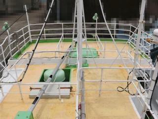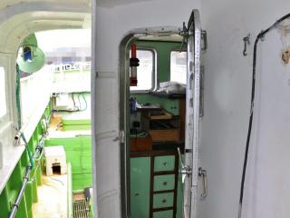 ◆前出の通りブリッジには左舷側のハッチからアクセスできます。また、その後方に機械場への入り口やドラム室があります。