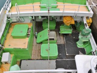 ◆船体は三重県の長島造船で平成3年に建造された個体です。小型鮪はえ縄漁船としては一般的な構成で、船底は本キールの漁船です。