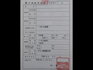 ◆この船は「漁船登録」船です。また、「日本小型船舶検査機構(JCI)」の検査済み船です。JCIでの用途は「小型兼用船」で、登録総トン数は3.4トンです。この船の正確な情報をお伝えする為に動力漁船登録票及び船舶検査証書と検査手帳を個人情報を伏せた状態で掲載しています。