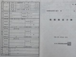 動力漁船登録票及びJCI検査証書・検査手帳及び船体銘板