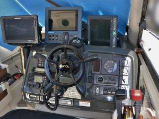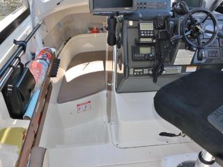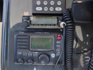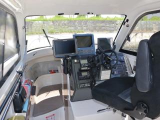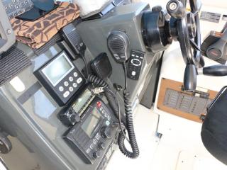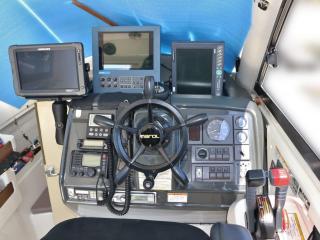 ◆コクピットにはローランスのGPS魚探、光電のソナー、ホンデックスのデジタルGPS魚探、マロールのオートパイロットなどの航行機器類が装備され、また、通信機器は、国際VHS、アマチュア無線などが装備されています。