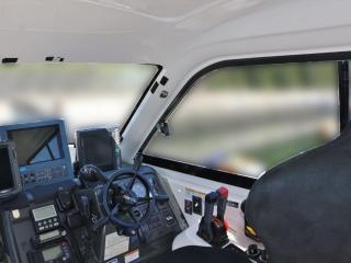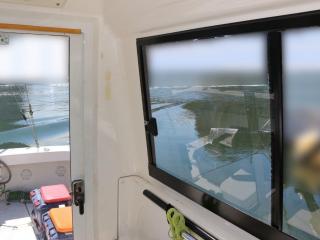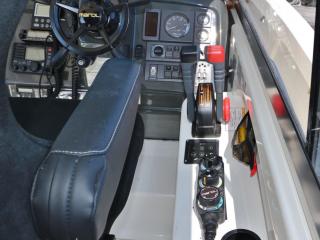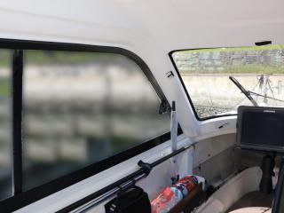 ◆コクピットからの見切りは良く、操船し易そうな艇です。両側スライド窓、リアドア付きのキャビンでオールシーズン楽しめそうです。