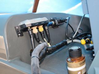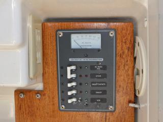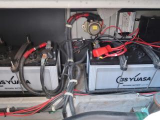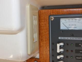 ◆右舷後方に主機前発電機のコントロールパネルがあり、この横のコンセントからは100Vが取り出せるようです。なお、この発電機関係の操作説明書も付属します。