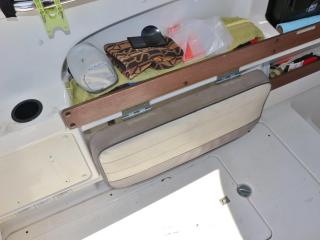 ◆左舷後方には2名程度が座れる折り畳み式のベンチシートが装備されています。