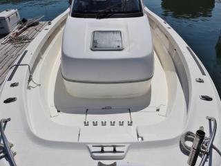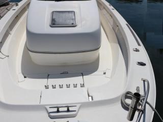 ◆船体はバウスプリット形状で、バウレールには純正のハイバウレールが付いていますのでキャスティングをするにも良さそうです。また、バウには電動アンカーウィンチも装備されています。