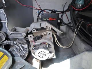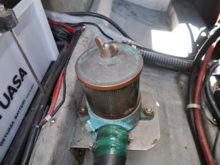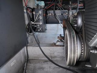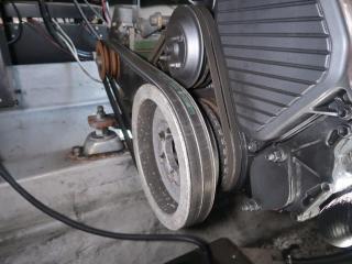 ◆主機前にプーリーを設けて発電機にベルトを掛けて回しています。発電機につきましては前項をご覧下さい。(操作説明書付きです。)