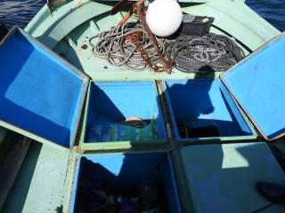 ◆小釣りに適しています、フロントデッキと艫デッキ、に深いイケスがあります。