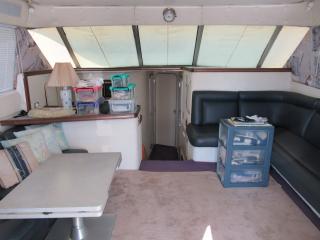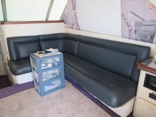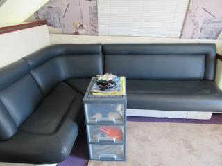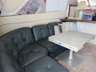 写真のようにセンターキャビンには大きなソファーとテーブルがあります。海の仲間が集まってもゆったりとご使用頂けるスペースが確保されています。