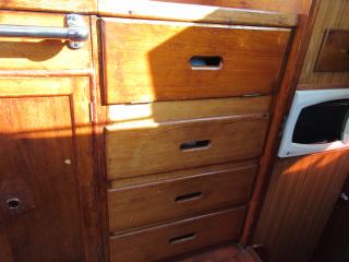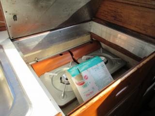 左舷側前方にはギャレーがあります。ギャレーにはシンク、電子レンジなどが装備されています。