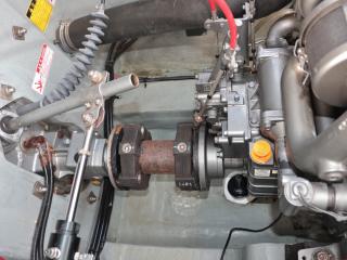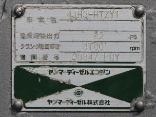 ◆エンジンはヤンマーのインタークーラーターボ付き4気筒ディーゼルエンジン、4JH3-HTZY1を搭載しています。検査手帳に記載されている連続最大出力は82PS/3700rpmです。取材時のエンジンアワーは約2046時間でした。