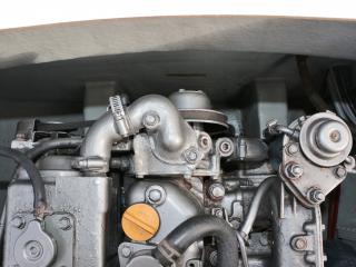 ◆このエンジンはヤンマーのマルチドライブ仕様です。マルチドライブとはエンジンの後方に油圧クラッチが装備されており、一般のコーンクラッチ式のように、前進や後進にクラッチを入れた際に「ドンッ」というショックがありません。またマルチドライブは流し釣り時など頻繁にクラッチのON⇔OFFを繰り返してもコーンクラッチのように摩耗して滑り出すような心配がほとんどありませんし、また微速機能も備わっていますので非常に便利で耐久性の高いクラッチです。