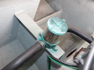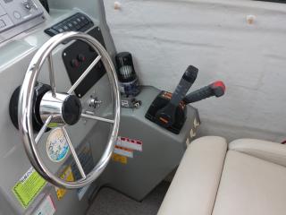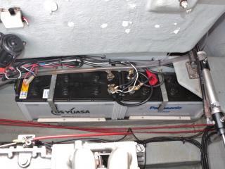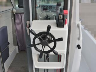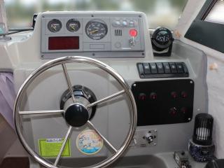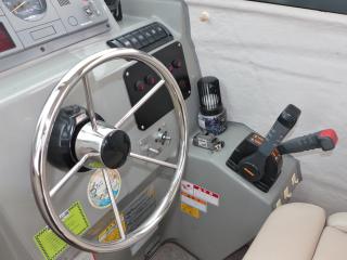 ◆エンジンリモコンはダブルレバー式です。操舵は油圧です。ヘルムハンドルは軽く動き、ヘルムポンプ軸からのオイル漏れなども見受けられませんでした。